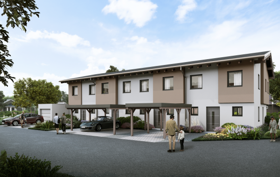 Die Häuser bieten auf rund 100 Quadratmetern Wohnfläche viel Platz zum Leben, Entspannen und Wohlfühlen. Jede Einheit verfügt über eine nach Süden ausgerichtete Terrasse mit eigenem Garten, ideal für sonnige Stunden im Freien. Für die Häuser 1 bis 3 steht ein praktischer Carport zur Verfügung, das Reiheneckhaus 4 wird durch eine Einzelgarage komplettiert.