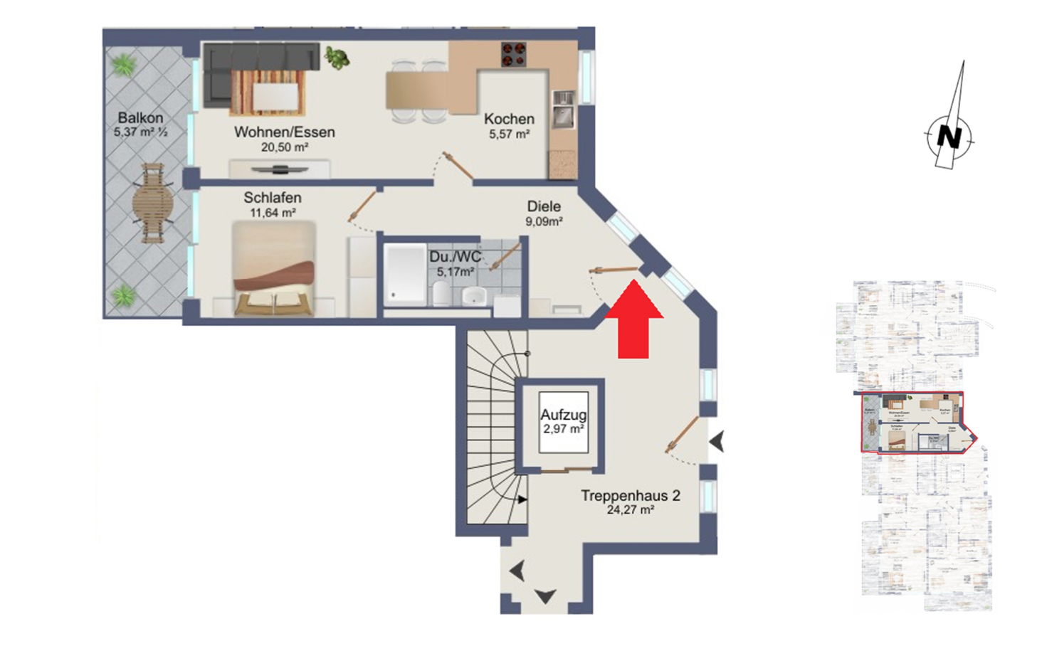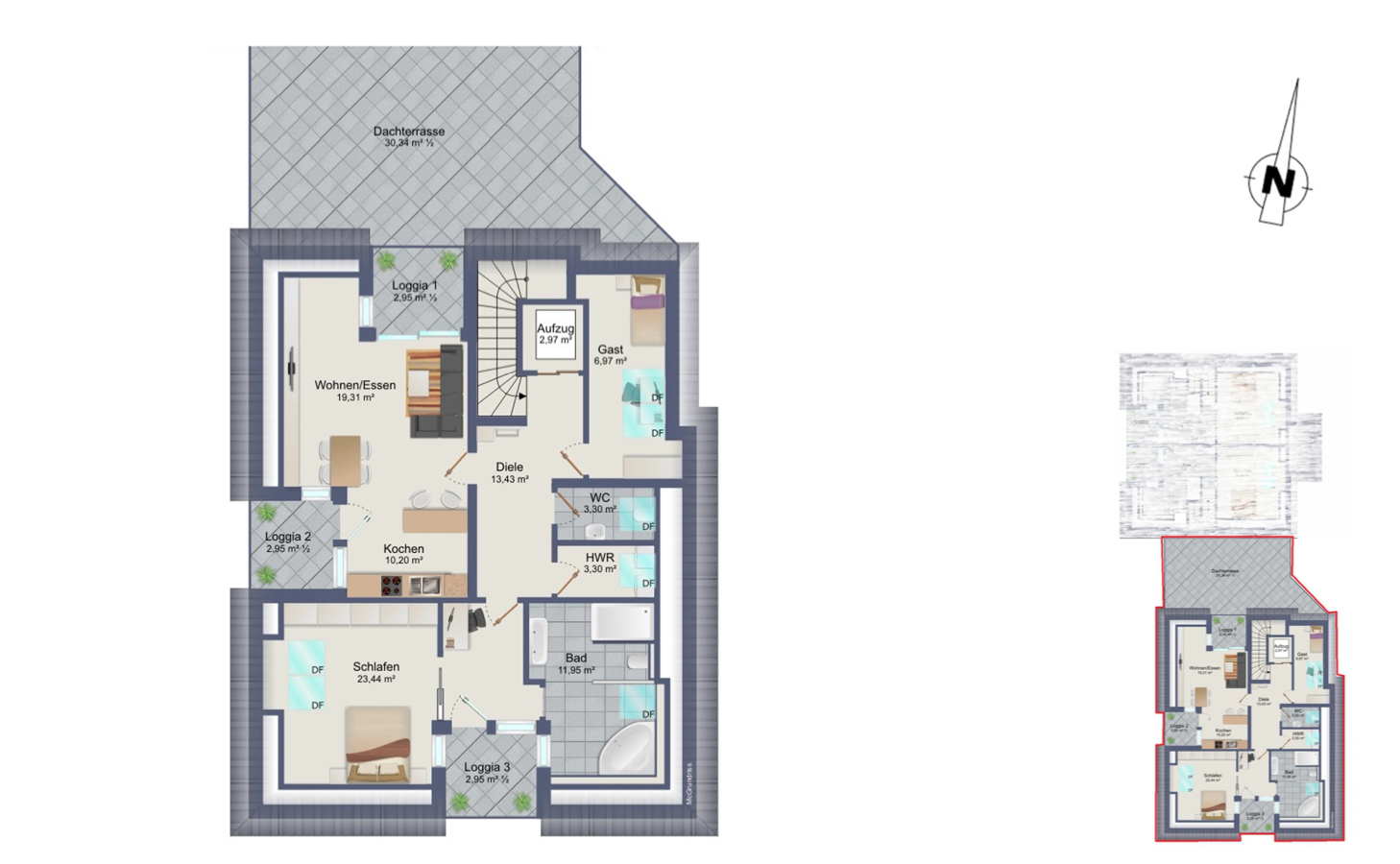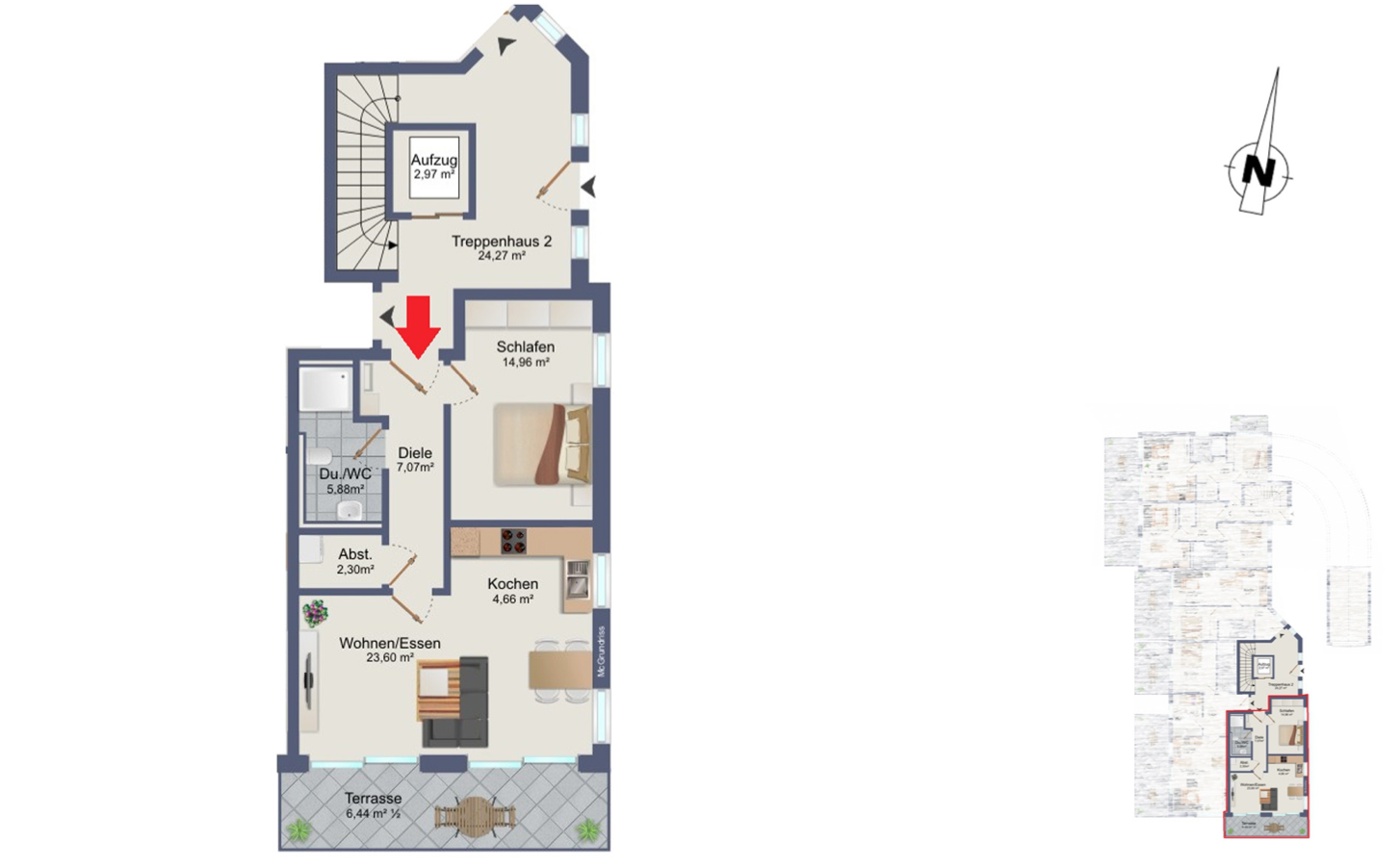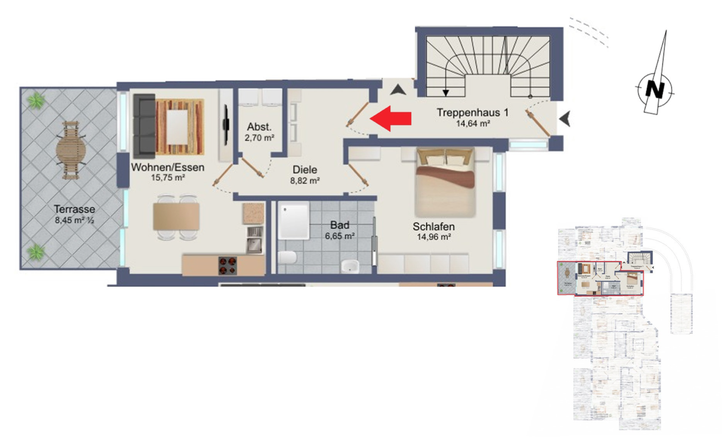 - Wohnräume in Parkett, Vinyl oder Laminat ausführbar