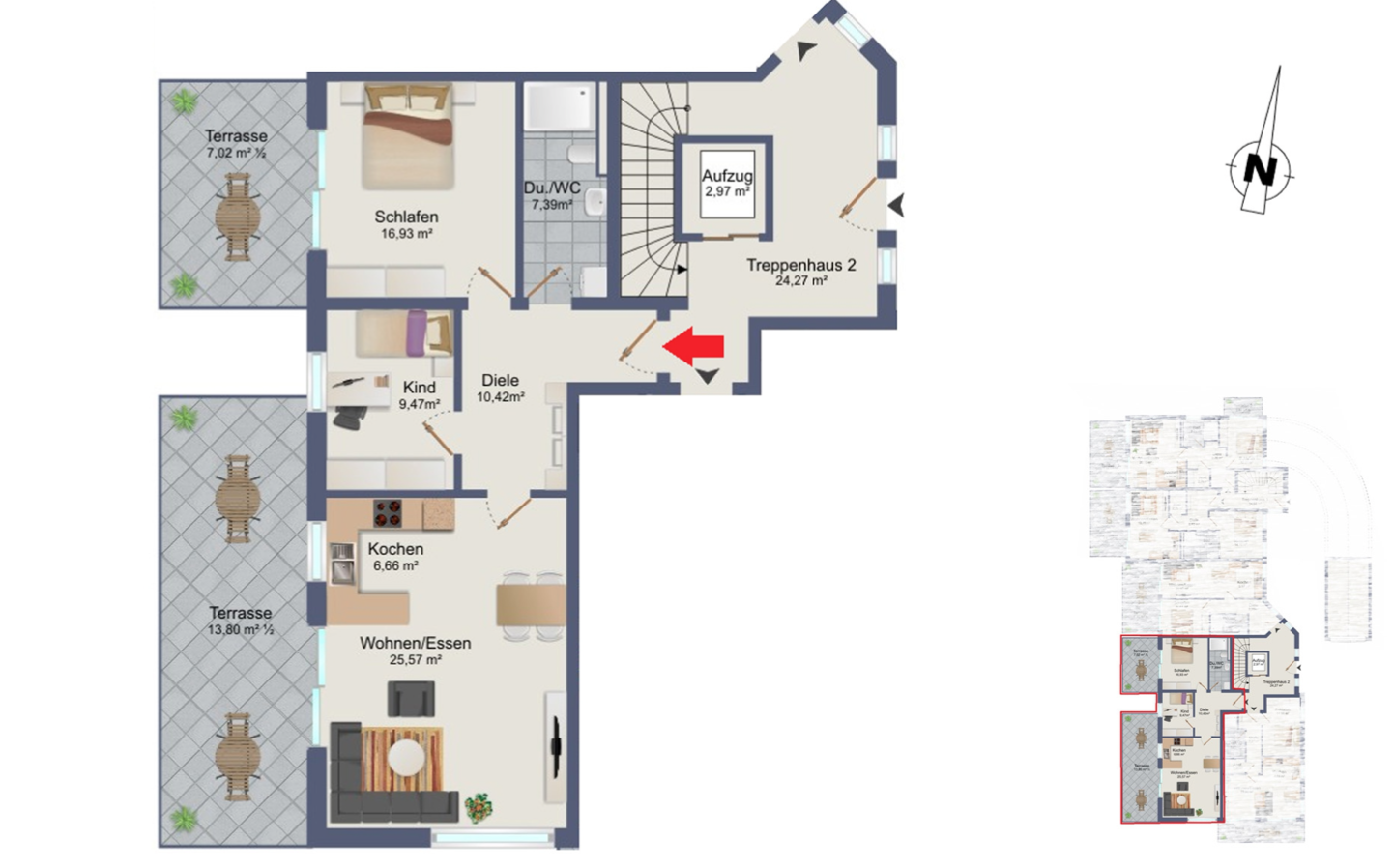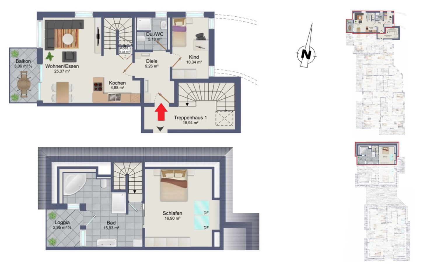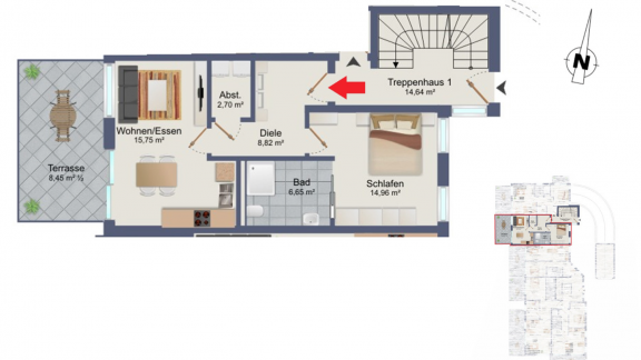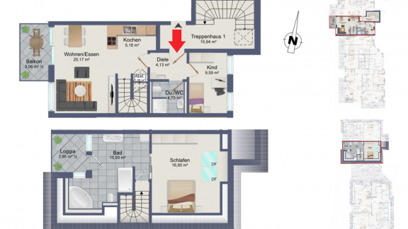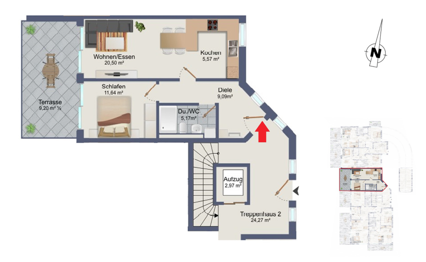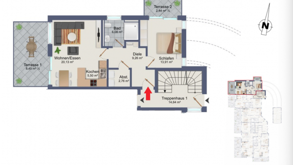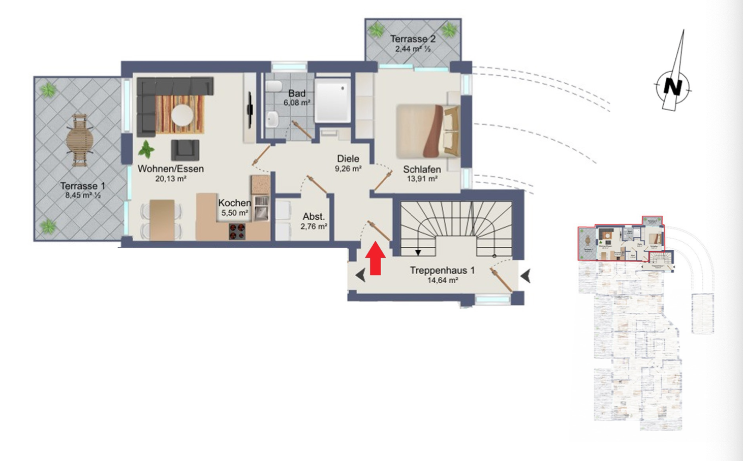 - Wohnräume in Parkett, Vinyl oder Laminat ausführbar