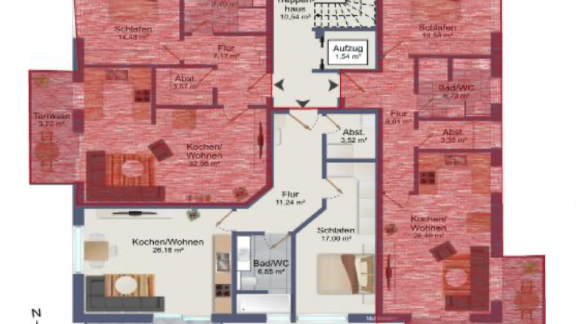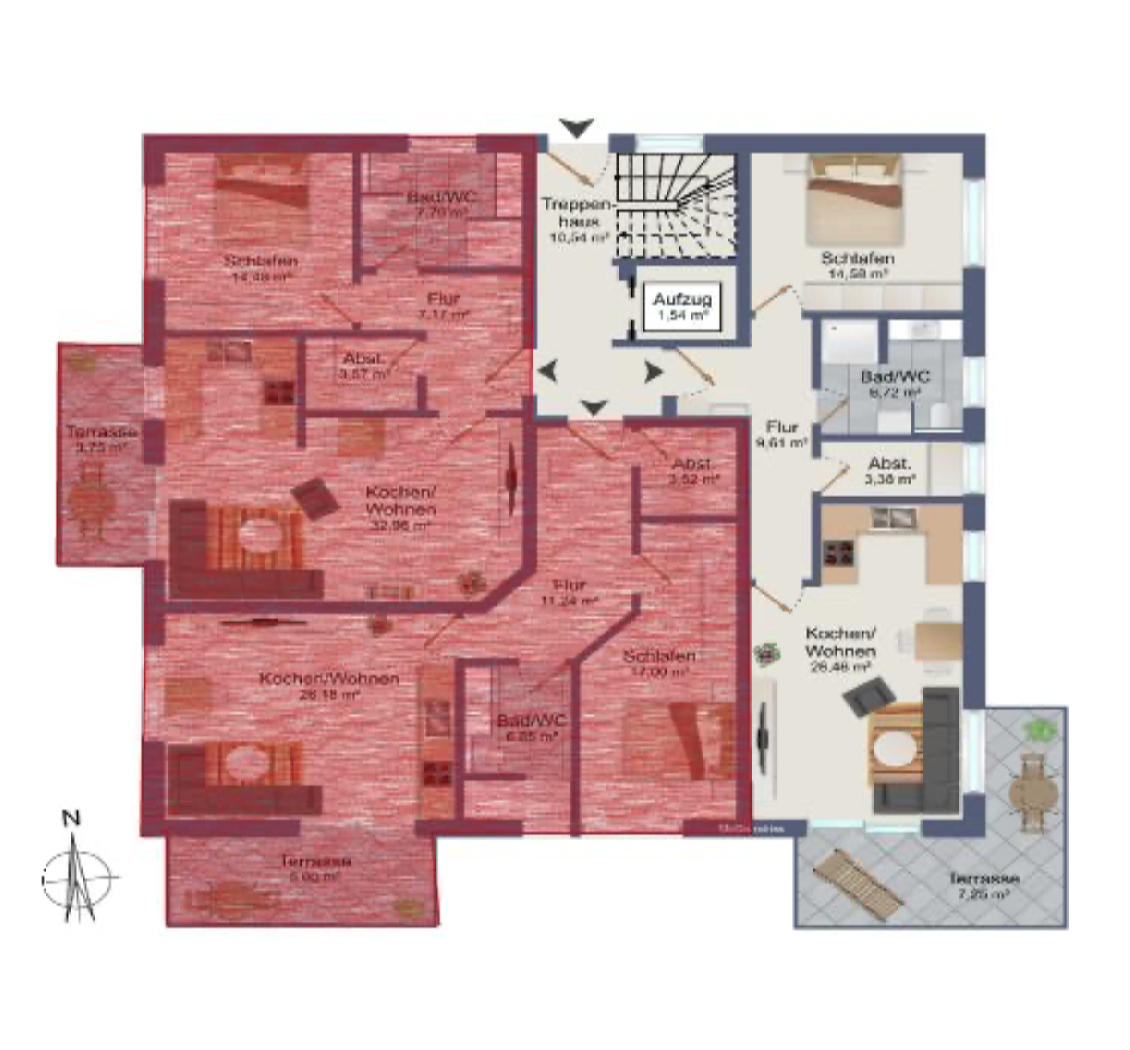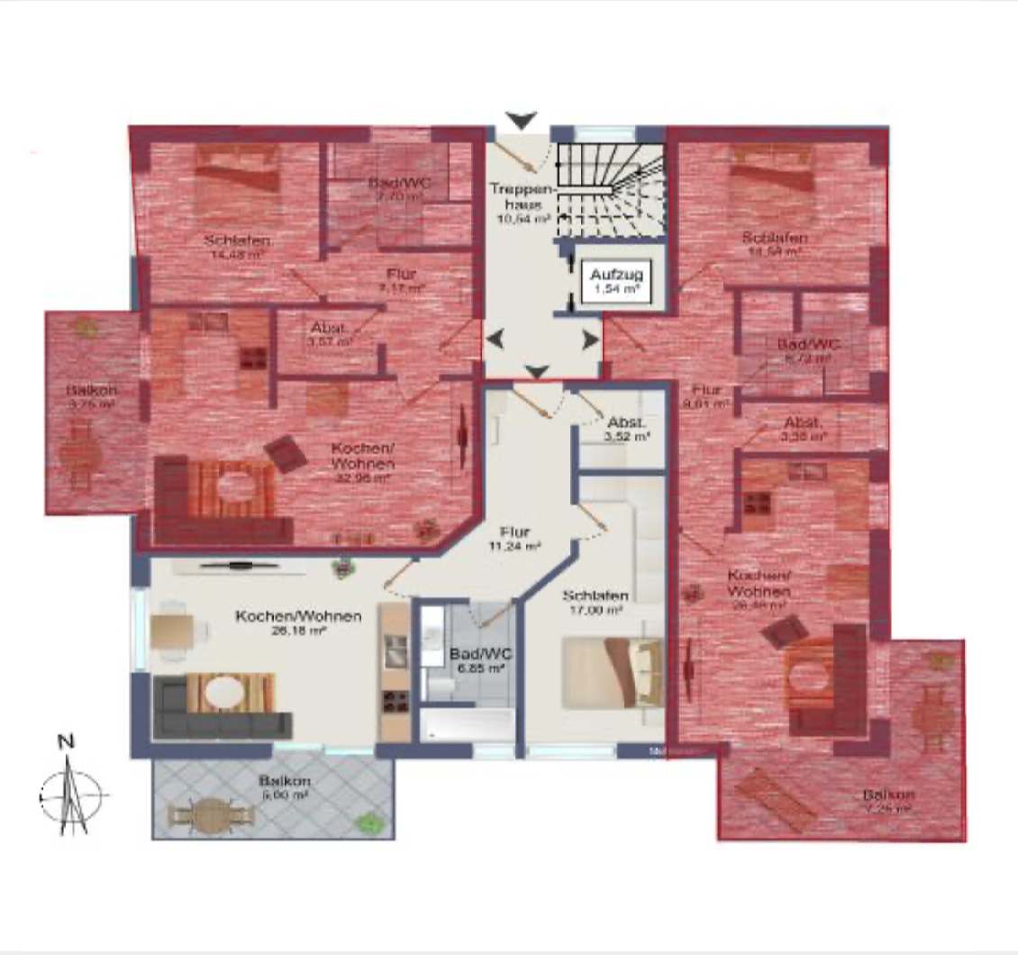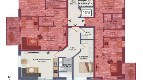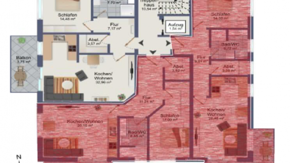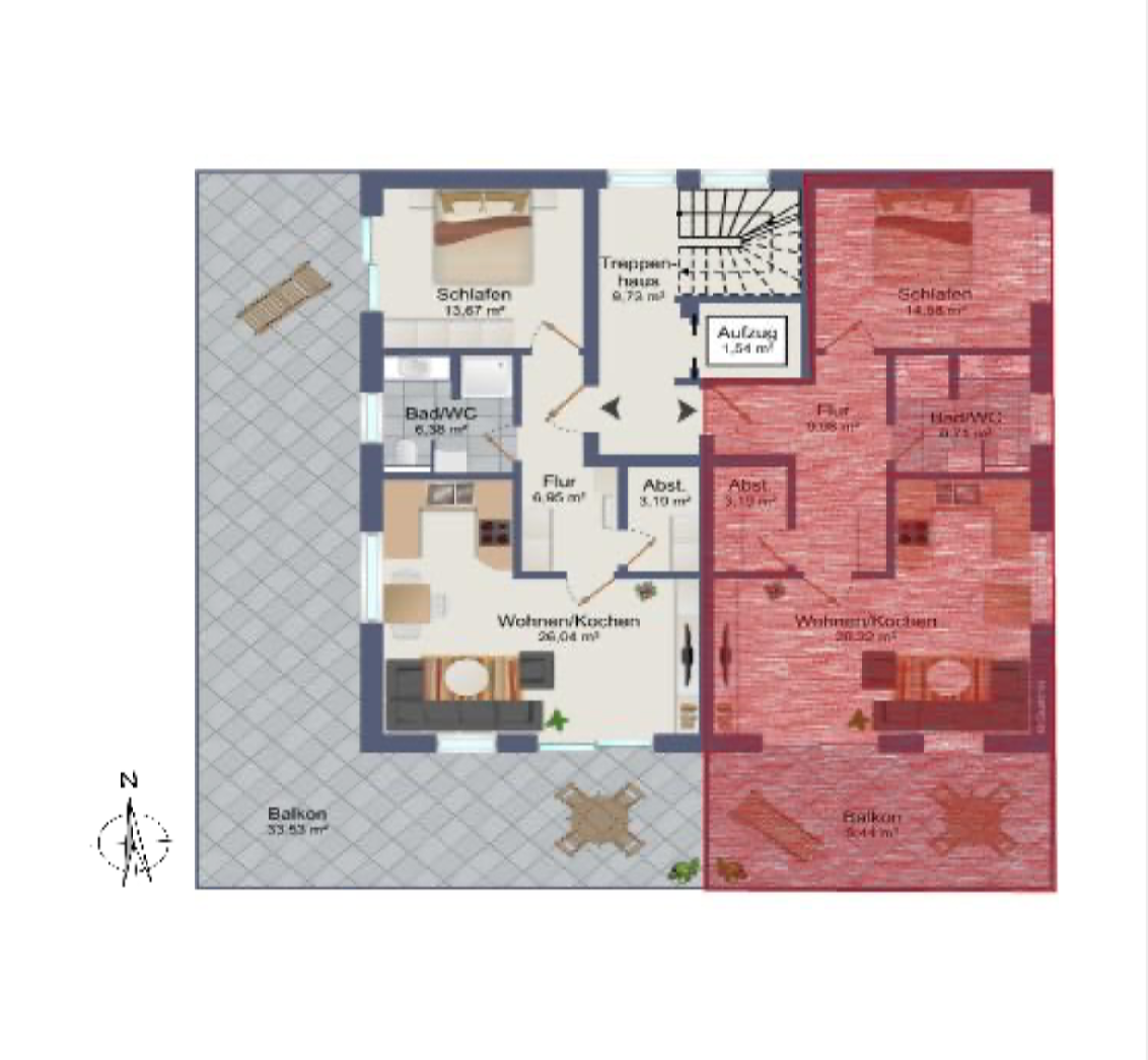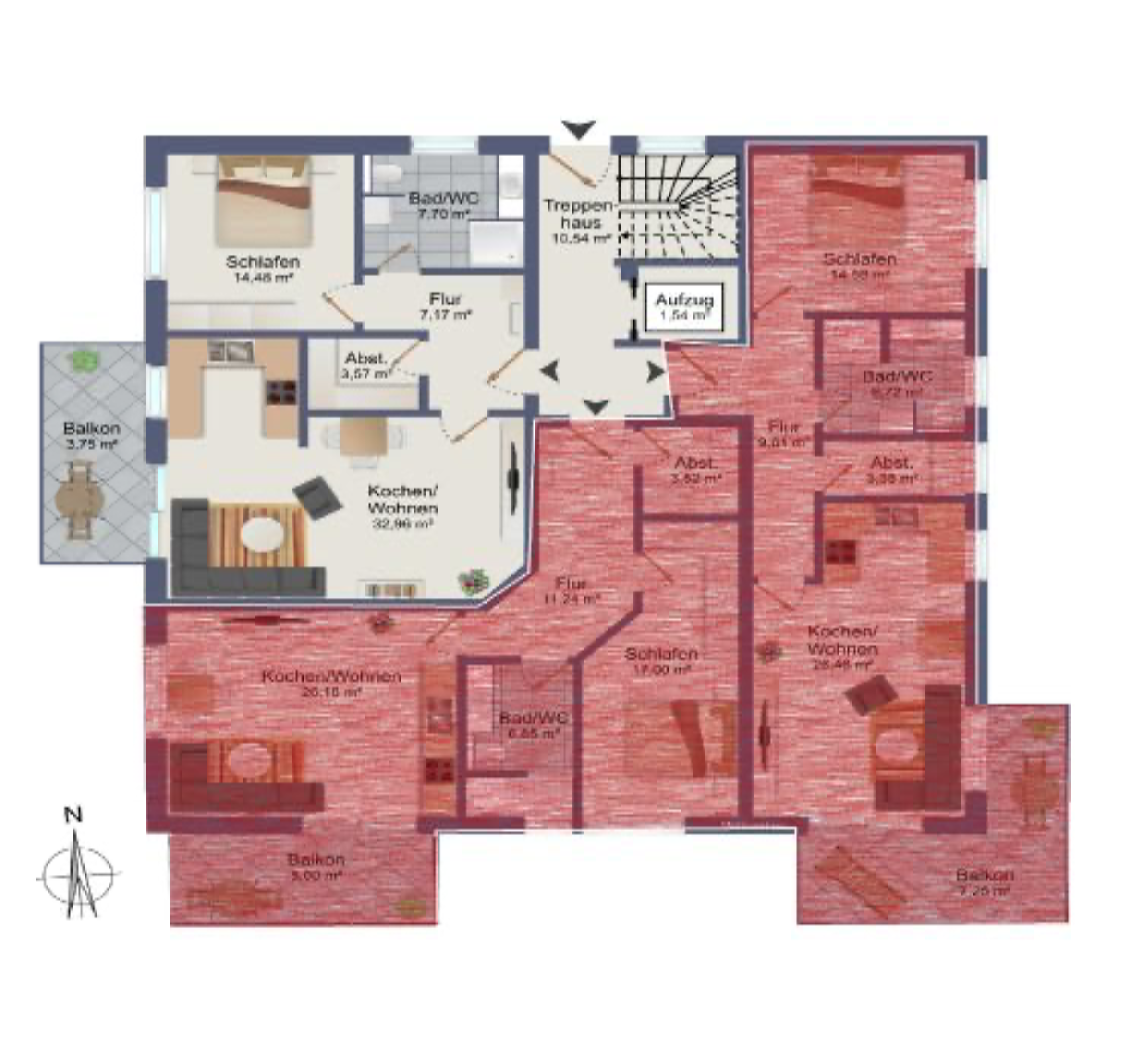Die geräumigen 2 – 3,5 Zimmerwohnungen mit 68 qm – 98,45 qm bieten eine Terrasse oder einen Balkon mit schönem Ausblick. Alternativ kann das Dachgeschoss jeweils auch als große Penthouse-Wohnung mit ca. 163 qm bzw. 175 qm Wohnfläche ausgebaut werden. Alle Wohnungen sind über eine Aufzugsanlage barrierefrei von der Tiefgarage bis zum Dachgeschoss erreichbar.