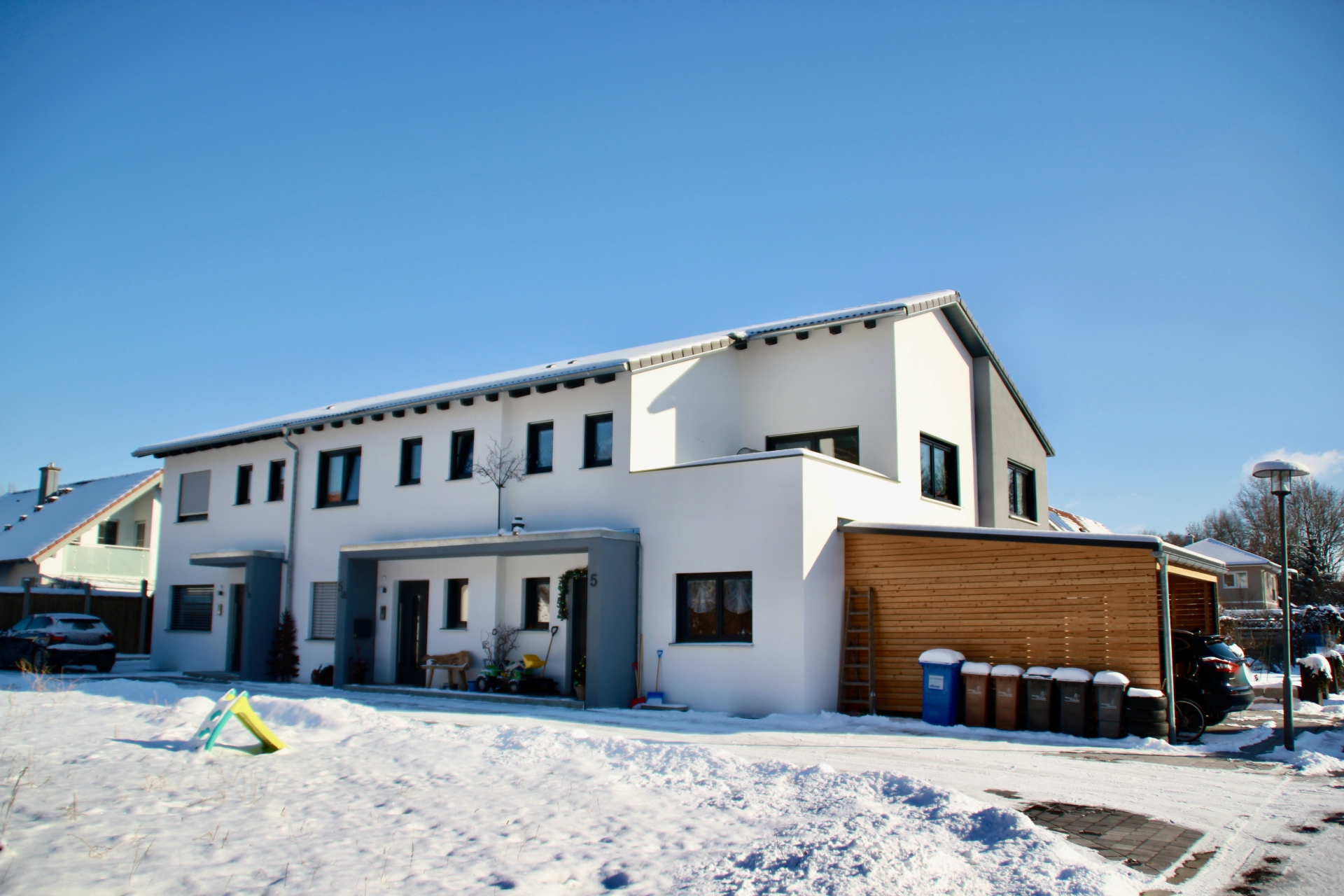 In attraktiver Architektur entstehen in der Stadt Memmingen diese drei Reihenhäuser. Aufgrund ihrer zentralen Wohnlage sind die Autobahnenanschlüsse A7 und A96 in naher Umgebung. Außerdem sind Altstadt, Einkaufsmöglichkeiten, Schulen und vieles mehr in wenigen Minuten zu erreichen.