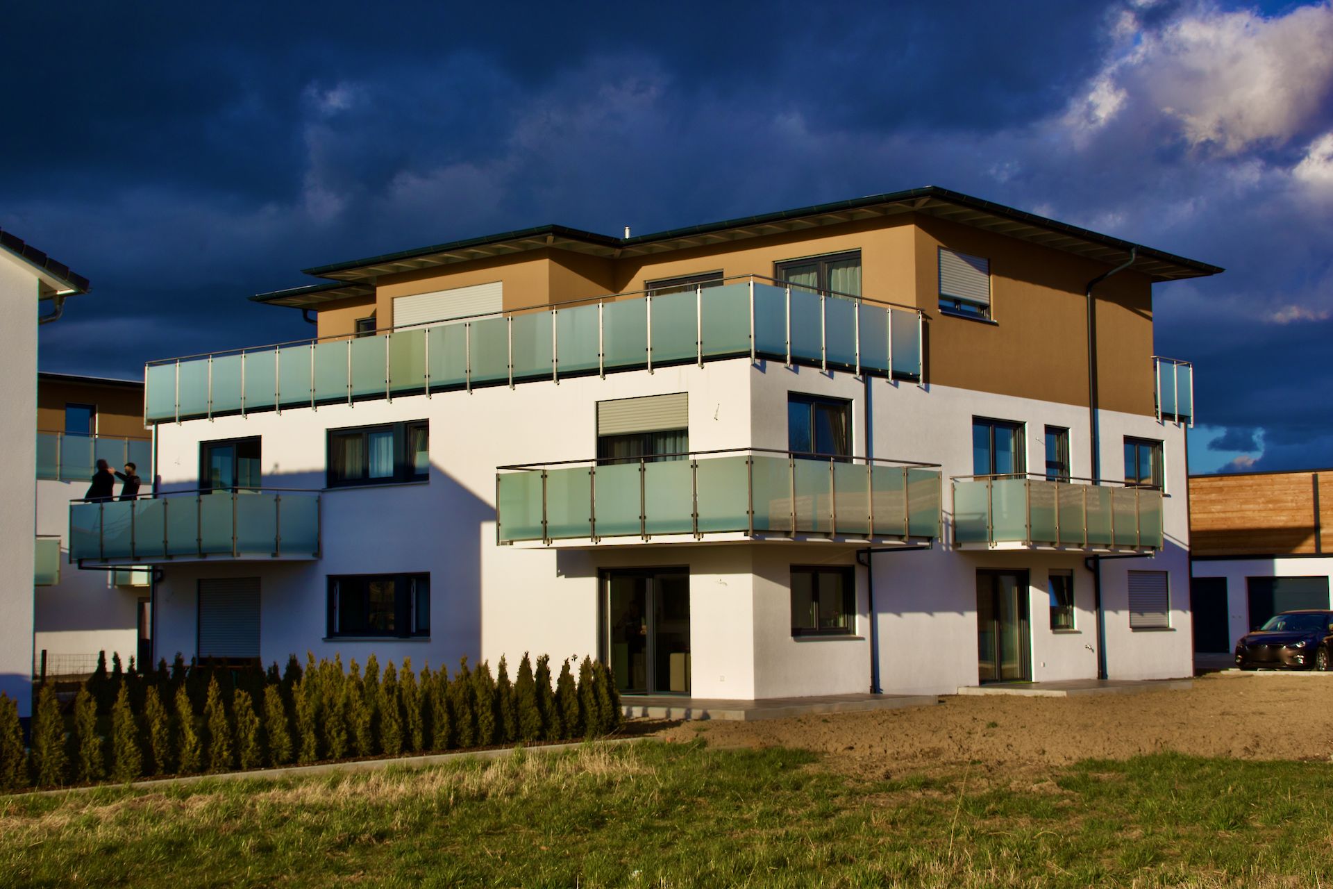 Die drei Mehrfamilienhäuser (1. Bauabschnitt mit Haus C, D, E) mit insgesamt 24 hochwertigen Eigentumswohnungen werden im Eduard-Mörike-Weg ab Herbst/Winter 2018 errichtet. Die hellen, weitläufigen und praktisch geschnittenen Wohnungen geben Ihnen schon beim Eintreten das Gefühl zuhause angekommen zu sein. Mit dem Aufzug fahren Sie bequem bis zu Ihrer Wohnungstür. Um die tolle Aussicht genießen zu können sind alle Wohnungen mit Terrasse, Balkon oder Dachterrasse und großzügigen Fensterfronten ausgestattet.