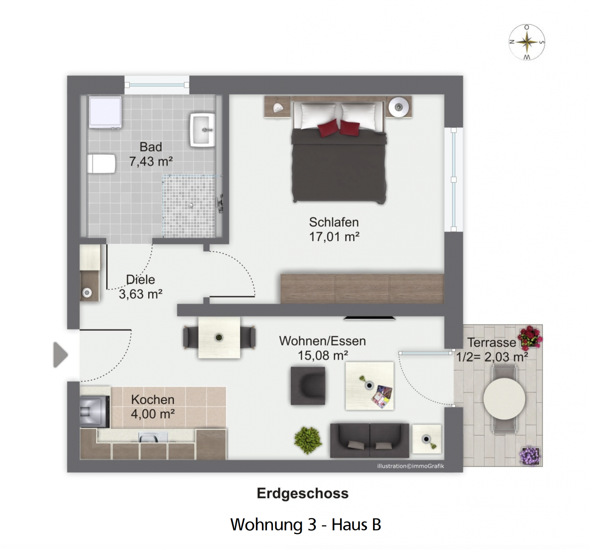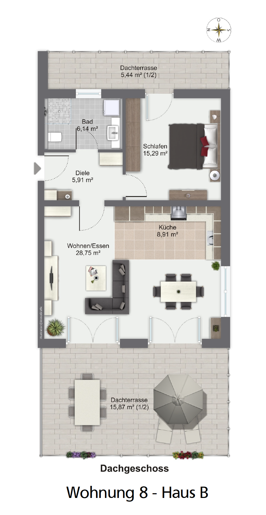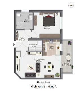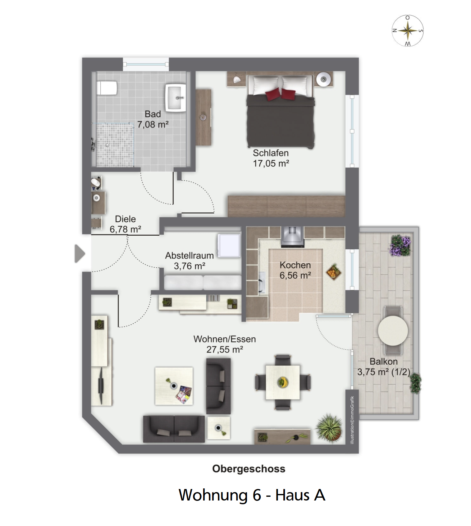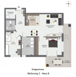 Die geräumigen Eigentumswohnungen bieten mit Ihren Zuschnitten von 2-3 Zimmern (60 qm - 106 qm Wfl.) Lebensraum für Jung und Alt. Die Erdgeschosswohnungen erhalten Terrassen mit Gartensondernutzungsrecht. Die Wohnungen im Obergeschoss erhalten Balkone und die Penthouse-Wohnungen schöne Dachterrassen.