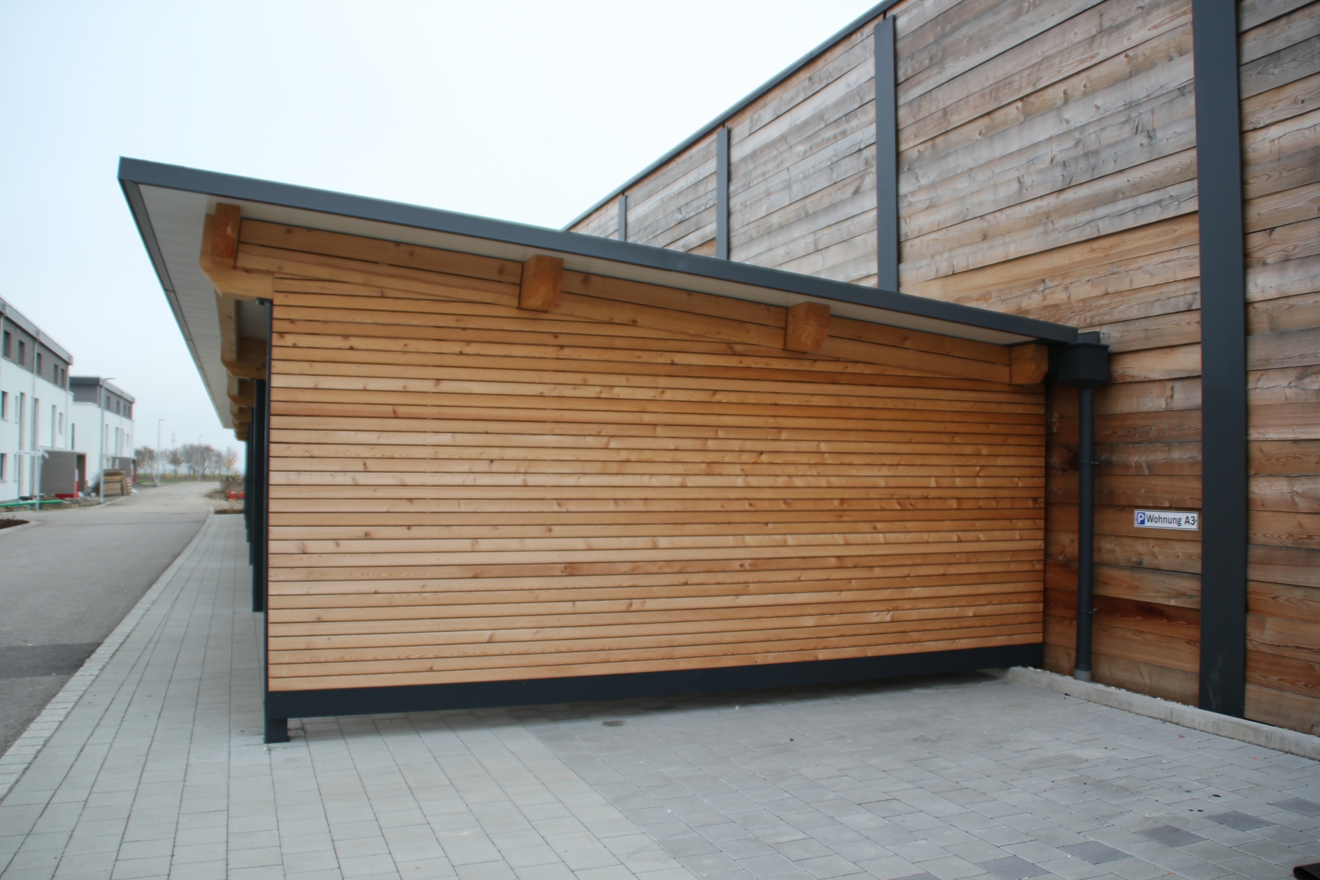 Die PKW-Außenstellplätze sind direkt am Haus positioniert. Die Einzelgaragen und Carports finden Sie auf der gegenüberliegenden Straßenseite vom Eduard-Mörike-Weg.