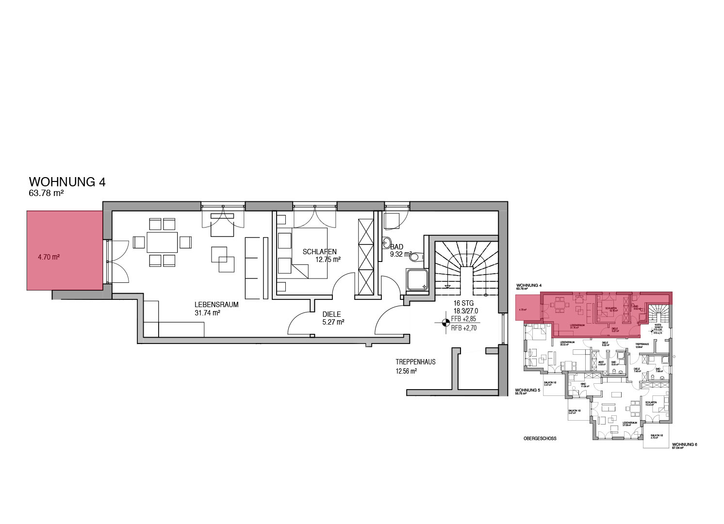 In attraktiver und moderner Architektur entsteht in ruhiger Ortsrandlage von Altusried diese kleine Wohnanlage. Bestehend aus einem Wohnkomplex mit insgesamt 8 Einheiten für anspruchsvolles Wohnen zum Wohlfühlen. Die hochwertigen Eigentumswohnungen bieten mit ihren Zuschnitten von 2 bis 3 Zimmern (55 qm bis 87 qm Wfl.) urbane Lebensqualität. Die Erdgeschosswohnungen erhalten Terrassen mit Gartensondernutzungsrecht. Die oberen Wohnungen sind ausgestattet mit schönen Balkonen mit Blick auf die Bergkulisse und ins Grüne. Zu jeder Wohnung gehört ein eigener Kellerraum. Außenstellplätze stehen Ihnen direkt vor dem Haus zur Verfügung. Die Ausstattung Ihrer Wohnung erfolgt nach Ihren Wünschen und Vorstellungen auf Basis der Baubeschreibung. Sonderwünsche sind nach Absprache möglich. Die zentrale Pelletheizung als regenerative und effiziente Heizungsart, Fenster mit 3-fach Verglasung und elektrischen Rollläden, dezentrale Lüftung -optional- sowie die Fußbodenheizung mit Einzelraumsteuerung sind nur einige Annehmlichkeiten, welche Ihr Wohngefühl steigen lassen.